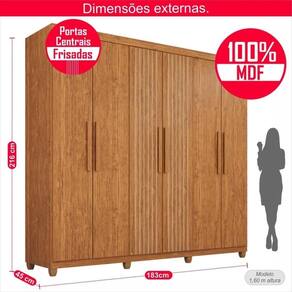Guarda Roupa de Solteiro 100% MDF 6 Portas 2 Gavetas Benfica Frison
