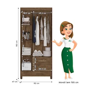 O Guarda-Roupa Lima é uma excelente opção para quem busca um móvel compacto e funcional. Fabricado em MDP, ele possui 3 portas, 2 gavetas externas que são equipadas com corrediças metálicas, garantindo um deslizamento suave e durável, 1 cabideiro, 4 nichos internos e puxadores na cor bronze. Ainda conta com pés em PVC que facilitam a limpeza embaixo do móvel, mantendo o ambiente mais organizado e acessível. Com essas características, ele oferece uma combinação perfeita de funcionalidade e praticidade para seu quarto. CARACTERÍSTICAS TÉCNICAS: - Produzido em MDP; - Cabideiro; - 3 Portas de Giro com Dobradiças Metálicas; - 2 Gavetas com Corrediças Metálicas; - Puxadores na cor Bronze. - Pés em PVC. INFORMAÇÕES TÉCNICAS: Altura: 182 cm Largura: 82 cm Profundidade: 47 cm Peso: 47,7 kg INFORMAÇÕES ADICIONAIS: - Não realizamos a montagem do móvel e não nos responsabilizamos por ela. Verifique o produto antes de montá-lo. Produtos danificados na montagem não serão trocados. Montagem e instalação são por conta do comprador. - As imagens decorativas são ilustrativas e podem conter itens não inclusos. As cores do produto podem variar conforme o monitor, iluminação ou percepção visual. - Limpeza: Use um pano macio seco ou levemente umedecido com água. Não utilize materiais abrasivos como palha de aço ou objetos cortantes. - Garantia de 3 meses contra defeitos de fabricação conforme o Código de Defesa do Consumidor.