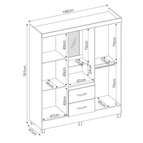 Com incrivel distribuicao interna, voce tem muito espaco de armezagem, gracas as prateleiras de dimensoes amplas e os dois cabideiros. Desde roupas