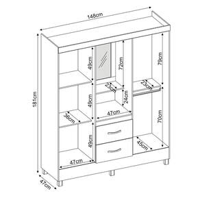 Com incrivel distribuicao interna, voce tem muito espaco de armezagem, gracas as prateleiras de dimensoes amplas e os dois cabideiros. Desde roupas