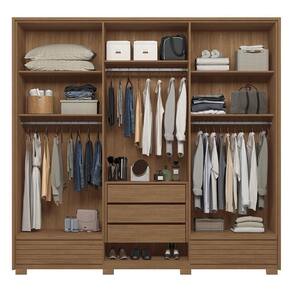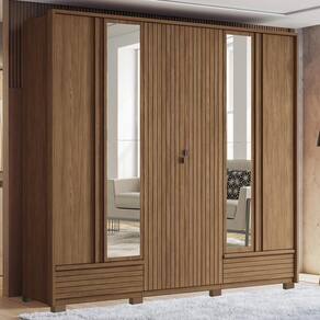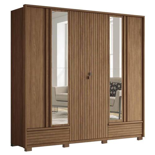 Guarda Roupa Democrata Ripado 6 Portas Jatobá Com Espelho E Pés - Santos Andirá Jatobá