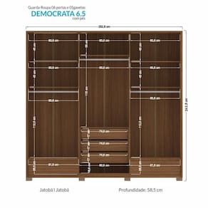 Guarda Roupa Democrata Ripado 6 Portas Jatobá Com Pés - Santos Andirá Jatobá