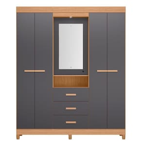 Feito 100% em MDP, além de possuir 4 portas, 4 prateleiras, 6 pés de ABS, cabideira de madeira e Camarim central com 1 lâmpada Led.