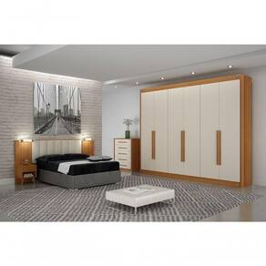Guarda Roupa Diamante Gold 6 Portas 6 Gavetas S/epelho Leifer Cinamomo/off White - Branco