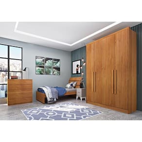 Guarda Roupa Dinamarca 4 Portas TcilCom 4 portas de bater e 3 gavetas internas, o Guarda-Roupa Dinamarca foi projetado com um design clássico e elegante que vai agregar valor a qualquer dormitório. Além da estética, oferece um espaço de armazenamento amplo e bem dividido para o seu consumidor. Sua estrutura em MDP com Pintura UV garantem um padrão elevado de qualidade. Aproveite!Especificações do produto:Altura: 234 cmLargura: 165 cmProfundidade: 55 cmPeso: 129 kgProduto em MDP e MDFPuxador em MDFGavetas com puxadores em PVCCorrediças telescópicasCabideiros em alumínioInformações importantes:- Os Objetos que ambientam as imagens não acompanham o produto.- Não nos responsabilizamos pela montagem e instalação dos produtos. A montagem deve ser realizada por um profissional, conforme as instruções do manual do produto.- Pode haver alguma diferença de tonalidade entre a foto e o produto, devido ao tratamento de imagens e a calibração do seu monitor ou dispositivo.- A entrega é realizada por transportadora, não nos responsabilizamos, no ato da entrega por desmontagens, subir escadas/elevadores ou transporte por guincho para apartamentos.- Antes de comprar o seu produto verifique as medidas e o local onde pretende instalar.