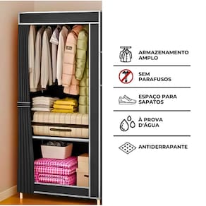 Fácil de Montar e Limpar: Sem complicação! A estrutura é simples de montar, sem a necessidade de ferramentas complexas. E para a limpeza, basta remover a capa de tecido e lavá-la, mantendo o guarda-roupa sempre em perfeito estado.