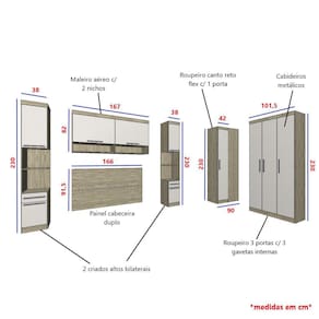 - 1 Maleiro Aéreo de 167 cm para cama de casal queen 1,58 m