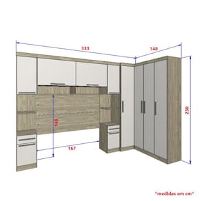 Profundidade: Roupeiros (Guarda Roupa) 46,5 cm; Criado-Alto e Aéreos 41,5 cm