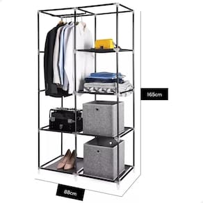 Guarda Roupa Duplo Portatil Cabideiro Arara Roupas 5 Prateleiras Armario Dobravel Organizador Preto Guarda-Roupa Dobrável Armário Cabideiro Portátil Arara Multifuncional para Camping e Organização na PraiaTransforme a organização dos seus espaços com o Guarda-Roupa Dobrável Armário Cabideiro Portátil. Perfeito para quem precisa de uma solução prática e estilosa para ambientes compactos, este armário oferece um design versátil que combina áreas para pendurar roupas e prateleiras adicionais, ideal para uso tanto em casa quanto em atividades ao ar livre. Características Principais:Design Elegante e Funcional: Este guarda-roupa foi projetado para otimizar o espaço em ambientes pequenos, com uma barra de suspensão para roupas e uma ampla seção com prateleiras. A combinação perfeita de praticidade e estilo para manter sua casa ou seu acampamento organizado com sofisticação.