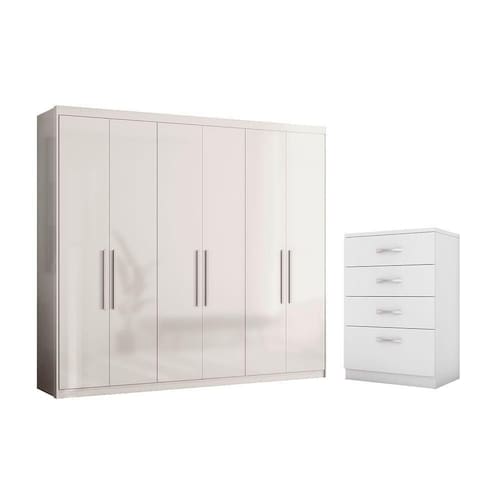 ALTURA DO PRODUTO COM EMBALAGEM (CM): | COMPRIMENTO PRODUTO COM EMBALAGEM (CM): | PRODUTO: Conjunto de Quarto | ALTURA DO PRODUTO (CM): 218 | MATERIAL PARA FILTRO: MDP | MATERIAL PRINCIPAL: MDP | INSTRUÇÕES/CUIDADOS: Limpar com pano macio e seco, não utilizar produtos abrasivos. | CORES DO PRODUTO (FILTRO DE CORES): Branco | DESCRIÇÃO DO TAMANHO: 218x241x56 cm | LARGURA DO PRODUTO (CM): 241 | PESO PRODUTO COM EMBALAGEM (KG): | COR PREDOMINANTE: Branco | LARGURA PRODUTO COM EMBALAGEM (CM): 55 | PRODUTO PRECISA DE MONTAGEM?: Sim, a montagem é simples mas sugerimos a contratação do nosso serviço de montagem (para os CEPs em que o serviço está disponível) ou de algum experiente de sua preferência | CONTEÚDO DA EMBALAGEM: 1 Guarda Roupa e 1 Cômoda | MARCA: CASAH | COMPRIMENTO DO PRODUTO (CM): 56 | ESTADO DE ORIGEM: PR | PESO DO PRODUTO (KG):