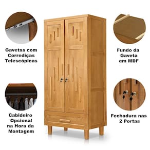 Características Armário de Roupas 100% Madeira 2 Portas 1 Gaveta: