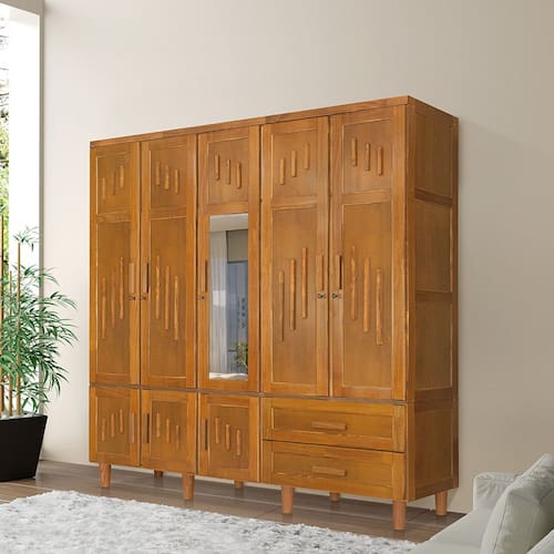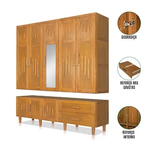 Guarda Roupa em Madeira Maciça 5 Portas 1 Porta com Espelho Imperatriz Imbuia - Marrom