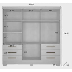 Guarda Roupa Encant Com Espelho Casal 6 Portas 6 Gavetas Novo Horizonte O Guarda Roupa Encant Com Espelho Casal 6 Portas 6 Gavetas Novo Horizonte é o que estava faltando no seu dormitório. Feito com materiais de alta qualidade, sua distribuição interna é uma das mais espaçosas da categoria. Cabe tudo de forma organizada: roupas, sapatos, acessórios, edredons e travesseiros.\nMEDIDAS\nAltura 205 cm\nLargura 180 cm\nProfundidade 46,8 cm\nCARACTERÍSTICAS\nFabricante Novo Horizonte\nModelo Guarda Roupa Encant Com Espelho\nGarantia 3 meses\nTipo de produto Guarda Roupa Casal\nAmbiente Quarto\nEstrutura MDP\nQuantidade de Portas 06\nQuantidade de Gavetas 06\nTipo de Porta Bater\nTipo de Corrediça Telescópica\nAcompanha Espelho Sim\nQuantidade de Pés 06\nNecessita Montagem Sim\nAcompanha Manual de Instalação Sim\nINFORMAÇÕES IMPORTANTES\nObjetos decorativos que porventura apareçam na foto, não acompanham o produto. Não nos responsabilizamos pela montagem/instalação dos produtos.\nMontagens, desmontagens e instalações são responsabilidades do cliente. Indicamos que contrate uma empresa de montagem ou um montador de sua confiança.\nAlém disso, favor verificar se os pés e acessórios estão dentro do forro inferior do produto. Em suma, todas as informações divulgadas sobre o produto são de responsabilidade do Fabricante.\nAs cores do produto podem variar de acordo com o seu monitor, a iluminação do ambiente em que você está e até mesmo a sua percepção visual. Além da cor, pequenos detalhes e acabamentos podem não ficar evidentes na foto, por isso as imagens são meramente ilustrativas