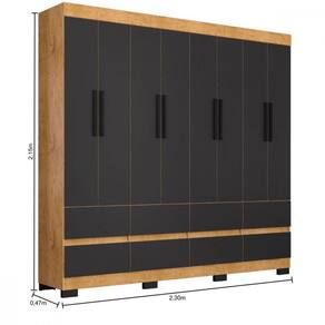 Guarda Roupa Esmeralda 8 Portas 8 Gavetas Sem Espelho Freijo/carbono Transforme seu espaco com o Guarda Roupa Esmeralda da Araplac, uma combinacao perfeita de elegancia e funcionalidade. Este guarda roupa espacoso oferece amplo armazenamento com suas 8 portas e 8 gavetas bem distribuidas 2 cabideiros robustos e 4 prateleiras internas, permitindo que voce organize roupas, acessorios e objetos pessoais de maneira eficiente, uma solucao completa para a organizacao do seu espaco. O Guarda Roupa Esmeralda a sintese perfeita entre funcionalidade e requinte. Construido com materiais de alta qualidade, proporciona resistencia e durabilidade excepcionais. Seu design contemporaneo otimiza o espaco disponivel, mantendo o estilo e transformando qualquer ambiente em um espaco sofisticado e bem organizado.