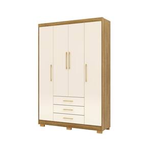 Guarda-Roupa 4 Portas 3 Gavetas Espanha Nature/Champanhe - Vila Rica