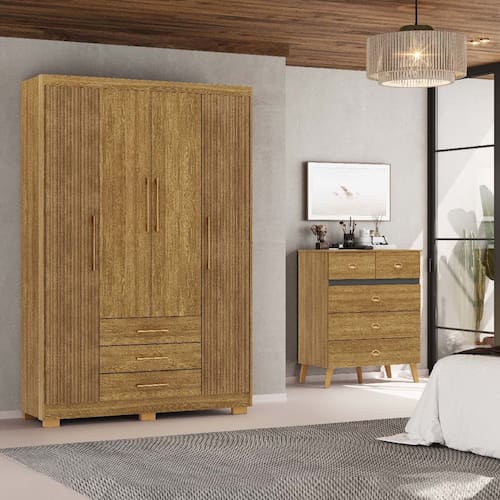 Guarda-Roupa Espanha 4 Portas Cômoda Ibiza 5 Gavetas Nature/Brisa/Alaska - Vila Rica