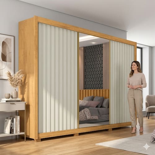 Guar-roupa: MDF | Puxador: AlumínioVendido e entregue por Casas Bahia