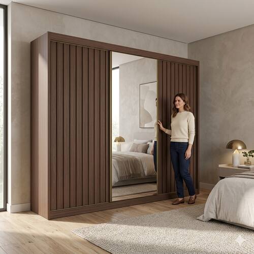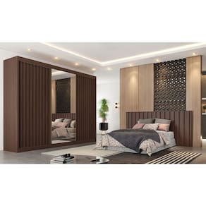 Guarda-Roupa Europa Grécia com espelho, 3 portas de correr, 6 gavetas e 12 prateleiras – 226 cm de largura - Ipê