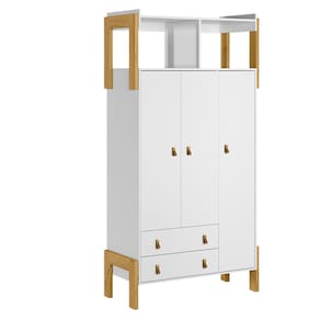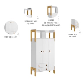 Caracteristicas: Marca: Qmovi Modelo: Fantasia Material: MDP 15/12 MDF Material dos Pes: MDF de 25mm Escala de Brilho: Acetinado Tipo de Puxador: Puxador em TPU Acabamento: Pintura UV Quantidade de Prateleiras: 06 Quantidade de Gavetas: 02 Quantidade de Portas: 03 Quantidade de Cabideiro: 01 Gavetas com corredicas telescopicas de 350mm Peso suportado: 55Kg -Distribuidos e sem impacto- Peso suportado prateleiras: 5 e 7Kg -distribuidos e sem impacto- Peso suportado gavetas: 5Kg -Distribuidos e sem impacto- Peso suportado cabideiro: 15Kg -distribuidos e sem impacto-