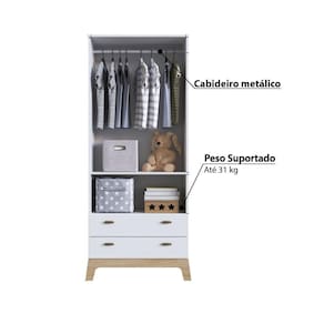 O Guarda Roupa Favo de Mel é uma graça, elegante, proporciona praticidade e conforto para o ambiente. Produzida em MDP, com pés autênticos, possui 2 portas e 2 gavetas, com ótimo espaço interno para armazenar roupinhas e acessórios do dia a dia. De fácil combinação em decorações diversas. Faz parte da linha Favo de Mel, a qual há outros produtos vendidos separadamente.