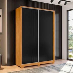 Conteúdo da Embalagem: 01 Guarda Roupa Frizatto com 2 Porta de Correr e 3 Gavetas Sem Espelho em Carvalho com Preto