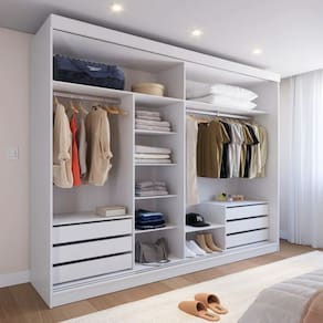 Amplo Espaço Interno: São 11 nichos e 7 prateleiras para acomodar roupas, calçados, acessórios e mais!