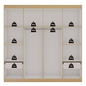 PESO SUPORTADO - Cabides até 12 kg distribuídos - Prateleiras até 10 kg distribuídos - Gavetas até 3 kg cada