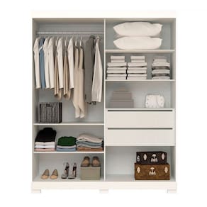 - Acompanha: 1 Guarda-Roupa, Kit Ferragens e Manual de Montagem