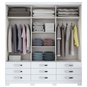 Com design moderno e inteligente, esse belo guarda-roupa ainda conta, puxadores resistentes, gavetas espaçosas e que deslizam suavemente, além de prateleiras para melhor aproveitamento do móvel.