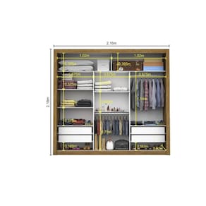 Guarda Roupa Ilhéus 3 Portas de correr com Espelho 218cm de altura,216cm de largura e 52cm de profundidade combinado com 4 gavetas, 6 prateleiras 2 cabideiros. Possui trilho em alumínio e roldanas em aço, tudo isso para um deslizar prefeito de suas portas. Os espelhos na vertical da porta central, dão todo o charme para este produto. Nos maleiros cabem certinhos os edredons, cobertores, travesseiros, toalhas, malas, bolsas entre outros. O cabideiros, além de resistentes, não envergam com o peso dos moletons, ternos, sobretudo, camisas e acessórios. As preteleiras são ideias para colocar roupas de cama, de banho, perfumes, kits de maquiagem, acixinhas com acessórios e bolsas menores. As 4 gavetas fixadas sobre corrediças metálicas, são ótimas para guardar roupas mais leves, malhas, pijamas, roupas íntimas.