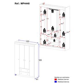 Dimensões do Produto Montado: Altura: 184cm | Largura: 122cm | Profundidade: 41cm *Você pode consultar as medidas detalhadas na imagem técnica do produto.