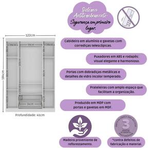 Altura: 184cm | Largura: 122cm | Profundidade: 41cm