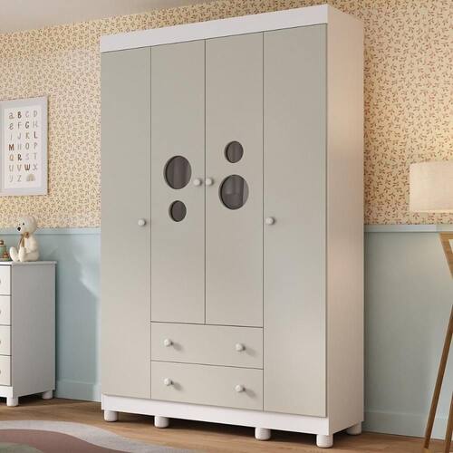 Guarda-roupa Infantil 122cm Com Vidro 4 Portas E 2 Gavetas Bombom Multimóveis MP4463 Branco/off White Criado para acompanhar os primeiros capítulos da infância, o Guarda-roupa Infantil 122cm com Vidro 4 Portas e 2 Gavetas Bombom Multimóveis MP4463 une charme, organização e aquele sentimento de carinho que todo quarto infantil precisa. Um móvel que acolhe, decora e simplifica tudo no mesmo lugar. Diferenciais: - 3 anos de garantia contra defeitos de fabricação e material. - Produzido em madeira de reflorestamento (MDP 12/15mm) com acabamento acetinado (cerca de 20% de brilho): sustentabilidade e durabilidade. - 4 portas e 2 gavetas (frontais em MDF): amplo espaço interno para organizar roupinhas e acessórios. - Detalhes de vidro incolor temperado 3mm: toque charmoso que permite visualizar o interior do móvel. - Corrediças telescópicas: permitem a abertura total e o manuseio silencioso das gavetas. - Cabideiro em alumínio: acomoda roupas longas e curtas para que não amassem. - Puxadores em ABS redondos e práticos. - Pés em polipropileno e rodapé: estabilidade e elegância. - Sistema antitombamento: proporciona segurança para o filho e tranquilidade aos pais.