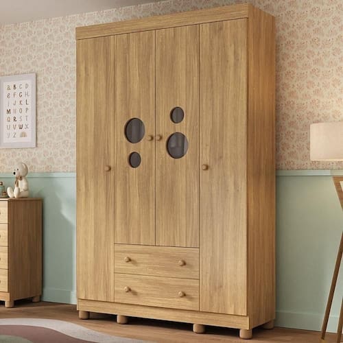 - 4 portas e 2 gavetas (frontais em MDF): amplo espaço interno para organizar roupinhas e acessórios.