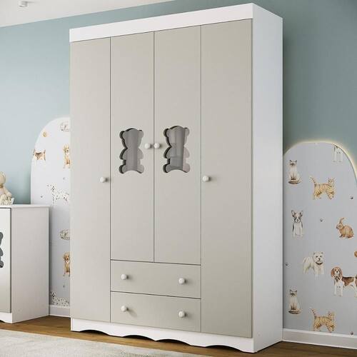 Guarda-roupa Infantil 122cm Com Vidro 4 Portas E 2 Gavetas Doçura Multimóveis Mp4493 Branco/off White Branco/off White