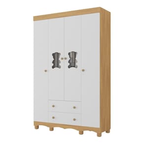 Guarda-roupa Infantil 122cm Com Vidro 4 Portas E 2 Gavetas Ternura Multimóveis Mp4478 Madeirado/branco Madeirado/branco