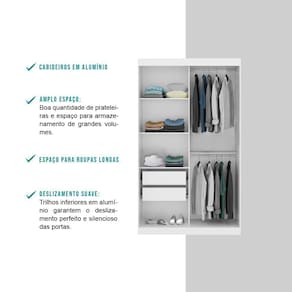 Cabideiro: 2 (alumínio) | Prateleiras: 4 (internas)