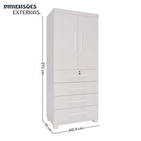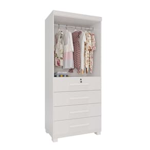 Funcional e compacto, este guarda-roupa conta com 2 portas e 4 gavetas, ideal para manter roupas e acessórios sempre organizados. Possui cabideiro em alumínio, puxadores em MDF e uma gaveta com chave, garantindo mais segurança para objetos pessoais. As corrediças telescópicas proporcionam abertura suave e durável, enquanto os pés em PVC completam o móvel com estabilidade e resistência. Possui Cabideiros: Sim Acabamento da Gaveta: Pintura UV Possui Organizador de Gaveta: Não Acabamento da Porta: Pintura UV Escala de Brilho da Porta: Semi-Fosco Material do Puxador da Porta: MDF Ambiente Principal: Quarto Infantil codigo_ean: 7900288214690 Complexidade da Montagem: Alta: deve ser montado por um montador especializado Cor: Branco Cor do Produto: Branco Escala de Brilho: Semi-Fosco Itens Inclusos: 1 Guarda-Roupa, Manual de Montagem e Kit Ferragens. Linha ou Coleção: Anne Manual de Montagem e Instalação: https://product-hub-prd.madeiramadeira.com.br/192478618/documents/ca33c775-22c7-4b3e-b131-a23e5933ec10310439549381753810367901.pdf Marca: Espresso Móveis Material da Gaveta: MDP Material da Porta: MDP Material dos Pés: PVC Material Principal: MDP modular: Não Necessita Montagem: Sim Origem do Produto: Nacional Peso: 49,5 kg Peso Máximo por Gaveta: 5 kg Possui Calceiros: Não Possui Espelho: Não Possui Pés: 04 Possui Portas: Sim Possui Prateleiras: Não Produto Montado: Sim Quantidade de Gavetas: 04 Gavetas Recomendações de Uso, Manutenção e Limpeza: Limpeza com pano macio e levemente umedecido. Não utilizar solventes a base e de inflamáveis. Não utilizar produtos abrasivos. Sistema de Montagem: Parafusos e cavilhas Tipo de Corrediça da Gaveta: Metálica Telescópica Tipo de Dobradiça/Corrediça da Porta: Metálica Tipo de Gaveta: Externa Tipo de Guarda-Roupa: Infantil Tipo de Puxador da Porta: Externo