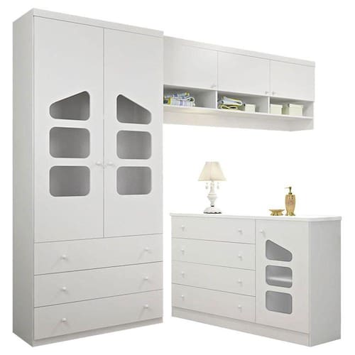 Guarda Roupa Infantil Módulo Aéreo Eloisa Branco Brilho - Phoenix