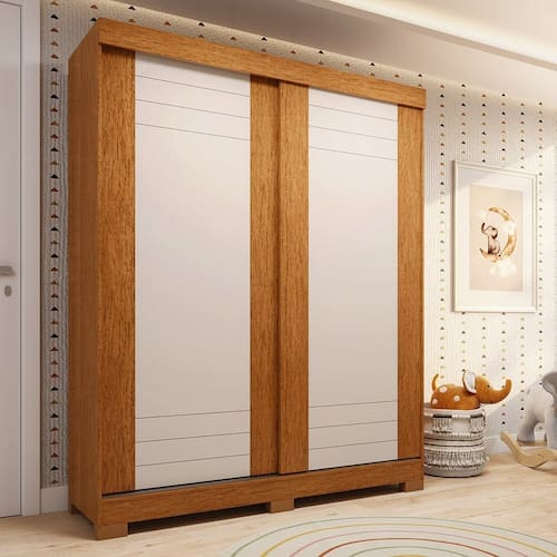 Que tal redecorar seu quarto com muito estilo e qualidade? O Guarda Roupa Lunara é perfeito para essa proposta. Desenvolvido em 100% MDF, Pintura UV e com detalhes a laser nas portas, oferece ao ambiente todo charme das tendências atuais de decoração e a garantia de maior resistência. Também conta com divisões bem distribuídas em seu interno, com 3 prateleiras e 2 gavetas de corrediças telescópicas. Seu cabideiro e o trilho inferior são em alumínio. Aproveite e adquira já o seu! Acabamento da Prateleira: Pintura UV Escala de Brilho da Prateleira: Semi-Brilho Acabamento da Gaveta: Pintura UV Escala de Brilho da Gaveta: Semi-Brilho Possui Organizador de Gaveta: Não Acabamento da Porta: Pintura UV Escala de Brilho da Porta: Semi-Brilho Acabamento dos Pés: Pintura Altura dos Pés: 5 cm Altura Máxima dos Pés: 5.0000 codigo_ean: 7900288191465 Complexidade da Montagem: Alta: deve ser montado por um montador especializado Cor: Cinamomo/Off White Cor da Porta: Off White Cor do Produto: Cinamomo/Off White Cor Flex: Sim Cor Interna: Off White Escala de Brilho: Semi-Brilho Gaveta com Chave: Não Guarda-Roupa Suporta Até (kg): 60 kg Itens Inclusos: 1 Guarda-Roupa, Kit Ferragens e Manual de Montagem Linha ou Coleção: Lunara Manual de Montagem e Instalação: https://product-hub-prd.madeiramadeira.com.br/802643693/documents/2e302045-6d31-48b7-aef4-f921c258739f3056879453317519931871639.pdf Marca: Espresso Móveis Material da Gaveta: MDF Material da Porta: MDF Material da Prateleira: MDF Material dos Pés: ABS Material Principal: MDF modular: Não Montagem Flex: Não Necessita Montagem: Sim Nicho com Cabideiro: Não Origem do Produto: Nacional Peso: 77 kg Peso Máximo por Gaveta: 5 kg Peso Máximo por Prateleira: 5 kg Porta Janelada: Não Possui Calceiros: Não Possui Capelinha: Não Possui Espelho: Não Possui Ganchos: Não Possui Nichos: Não Possui Penteadeira: Não Possui Pés: 06 Possui Portas: Sim Possui Prateleiras: Sim Produto Montado: Sim Quantidade de Cabideiros: 01 Cabideiro Quantidade de Gavetas: 02 Gavetas Quantidade de Prateleiras: 03 Prateleiras Recomendações de Uso, Manutenção e Limpeza: Para limpar não use nenhum tipo de produto, tais como sabão, esponja de aço, álcool e lustra-móveis. Use somente uma flanela seca. Não molhe nem exponha o móvel à umidade ou a luz solar diretamente ou outra forma de calor. Não encoste o móvel na parede. Não o arreste. Se precisar mudar o móvel de lugar, esvazie por completo o móvel, não o arraste, com ajuda de outras pessoas suspenda o móvel de forma segura e o posicione no lugar desejado. Sapatas Niveladoras: Não Sistema de Montagem: Parafusos, Minifix e Cavilhas Suporta Até (kg): 60 kg Tipo de Corrediça da Gaveta: Metálica Telescópica Tipo de Dobradiça/Corrediça da Porta: Alumínio Tipo de Gaveta: Interna Tipo de Guarda-Roupa: Infantil Tipo de Puxador da Porta: Não Possui