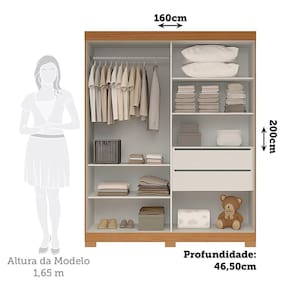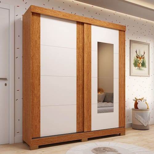 Que tal redecorar seu quarto com muito estilo e qualidade? O Guarda Roupas Fantelli é perfeito para essa proposta. Desenvolvido em 100% MDF e acabamento em Pintura UV, oferece ao ambiente todo charme das tendências atuais de decoração e a garantia de maior resistência. Também conta com divisões bem distribuídas em seu interno, com 4 prateleiras e 2 gavetas de corrediças telescópicas. Seu cabideiro e os trilho inferior são em alumínio. Aproveite e adquira já o seu! Acabamento da Prateleira: Pintura UV Escala de Brilho da Prateleira: Semi-Brilho Acabamento da Gaveta: Pintura UV Escala de Brilho da Gaveta: Semi-Brilho Possui Organizador de Gaveta: Sim Acabamento da Porta: Pintura UV Escala de Brilho da Porta: Semi-Brilho Acabamento dos Pés: Pintura Altura do Espelho: 120 cm Altura dos Pés: 5 cm Altura Máxima dos Pés: 5.0000 codigo_ean: 7900288191533 Complexidade da Montagem: Alta: deve ser montado por um montador especializado Cor: Cinamomo/Off White Cor da Porta: Off White Cor do Produto: Cinamomo/Off White Cor Flex: Sim Cor Interna: Off White Escala de Brilho: Semi-Brilho Espessura do Espelho: 3 mm Formato do Espelho: Retangular Gaveta com Chave: Não Guarda-Roupa Suporta Até (kg): 60 kg Itens Inclusos: 1 Guarda-Roupa, Kit Ferragens e Manual de Montagem Largura do Espelho: 70 cm Linha ou Coleção: Fantelli Manual de Montagem e Instalação: https://product-hub-prd.madeiramadeira.com.br/396602745/documents/8952870b-ad45-4272-baff-99490336efd9305693245331751994029543.pdf Marca: Espresso Móveis Material da Gaveta: MDF Material da Porta: MDF Material da Prateleira: MDF Material dos Pés: ABS Material Principal: MDF modular: Não Montagem Flex: Não Necessita Montagem: Sim Nicho com Cabideiro: Não Origem do Produto: Nacional Peso: 98,5 kg Peso Máximo por Gaveta: 5 kg Peso Máximo por Prateleira: 5 kg Porta Janelada: Não Possui Calceiros: Não Possui Capelinha: Não Possui Ganchos: Não Possui Nichos: Não Possui Penteadeira: Não Possui Pés: 06 Possui Portas: Sim Possui Prateleiras: Sim Produto Montado: Sim Quantidade de Cabideiros: 01 Cabideiro Quantidade de Espelho: 02 Espelhos com Tamanhos Iguais Quantidade de Gavetas: 02 Gavetas Quantidade de Prateleiras: 04 Prateleiras Recomendações de Uso, Manutenção e Limpeza: Para limpar não use nenhum tipo de produto, tais como sabão, esponja de aço, álcool e lustra-móveis. Use somente uma flanela seca. Não molhe nem exponha o móvel à umidade ou a luz solar diretamente ou outra forma de calor. Não encoste o móvel na parede. Não o arreste. Se precisar mudar o móvel de lugar, esvazie por completo o móvel, não o arraste, com ajuda de outras pessoas suspenda o móvel de forma segura e o posicione no lugar desejado. Sapatas Niveladoras: Não Sistema de Montagem: Parafusos, Minifix e Cavilhas Suporta Até (kg): 80 kg Tipo de Corrediça da Gaveta: Metálica Telescópica Tipo de Dobradiça/Corrediça da Porta: Alumínio Tipo de Fixação do Espelho: Parafusos Tipo de Gaveta: Interna Tipo de Guarda-Roupa: Infantil Tipo de Puxador da Porta: Não Possui