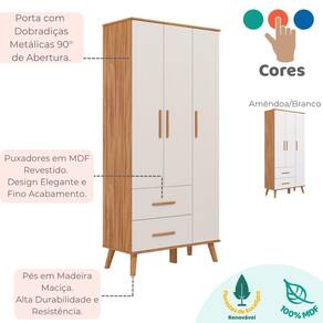 R - Conta com 3 portas, 2 gavetas internas, prateleiras, cabideiro e espaço para organização de roupas, calçados e acessórios.