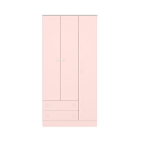 Características: Cabideiro oblongo metálico e ótima divisão interna para roupas longas Gavetas com corrediças metálicas e excelente profundidade Puxadores em plástico poliestireno com formato de estrela Produto com portas contendo dobradiças metálicas Amplo espaço interno com prateleiras estrategicamente posicionadas para melhor organização Bordas com um ótimo acabamento em perfil PVC Acabamento revestido em pintura UV Estrutura em MDP 3 Portas 2 Gavetas