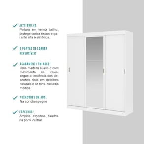 O Guarda-Roupa West Infantil Carraro é uma peça ótima para organizar e manter seu ambiente estilo. Conta com 3 portas reversíveis, podendo escolher o melhor acabamento na hora da montagem. Ele comporta tudo que precisa sem a preocupação de falta de espaço. A peça possui grande espeaço de cabideiros e gavetas, nichos laterais com diversas prateleiras internas, é possível armazenar roupas, acessórios e calçados, deixando tudo à mão e trazendo muita praticidade para o seu dia a dia.