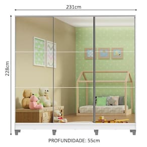 Medidas totais do armário: 228 cm de altura x 231 cm de largura x 55 cm de profundidade.