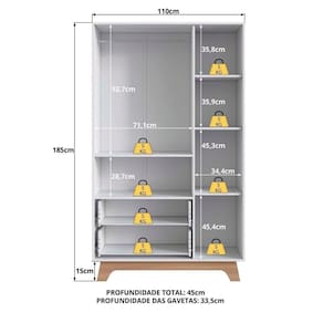 Com design clean e funcional, ele é produzido 100% em MDF 1,5cm, com fundos em 0,6cm e acabamento de alta qualidade. Conta com gavetas com corrediças telescópicas, tubo e suporte cabideiro em metal, e puxadores embutidos, que garantem segurança e um visual moderno.