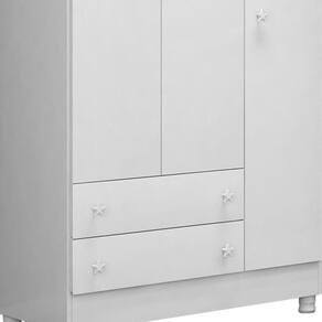 Guarda Roupa Infantil 3 Portas E 2 Gavetas Doce Sonho Branco Com Pés - Qmovi Branco Guarda Roupa Infantil 3 Portas e 2 Gavetas Doce Sonho com Pés - Qmovi Com o Guarda-Roupa Doce Sonho você terá maior funcionalidade e elegância no quarto do bebê. Ele conta com amplo espaço para guardar e organizar os pertences de forma funcional para o dia a dia. Seus puxadores exclusivos em forma de estrela vão transformar o ambiente deixando-o mais divertido e charmoso. ESPECIFICAÇÕES: - Estrutura em MDP - Pintura UV atóxica - 3 Portas - 2 Gavetas - Corrediças metálicas - Puxadores em forma de estrela - Prateleiras - Cabideiro - Pés em PVC - Maior organização e praticidade