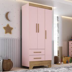 Guarda Roupa Infantil 3 Portas e 2 Gavetas Tic Tac Rosa Fosco/Nature. Apresentamos um roupeiro elegante e funcional construído com materiais de alta qualidade, incluindo MDP de 12mm nas laterais, divisões, chapéus e prateleiras, e MDP de 15mm nos rodapés, frente de gavetas, encabeçamento e portas, garantindo durabilidade. O fundo é feito de MDF de 3mm. Este roupeiro oferece uma excelente distribuição interna com um cabideiro de madeira revestida, e possui um design elegante com puxador em MDF na cor do produto e pés usinados que conferem ao Guarda-Roupa uma estética única. A pintura UV fosca com um moderno padrão de cores internas adiciona um toque atrativo. A montagem é simplificada com um manual detalhado, parafusos de 4,0x40 e cavilhas de 6mm. Este roupeiro combina estilo e funcionalidade, tornando-o ideal para organizar e embelezar seu espaço. Ean: 7896614978704