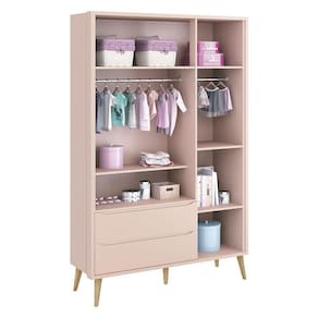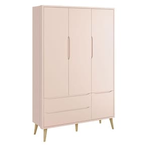 Guarda Roupa Infantil Theo 3 Portas Rosa com Pés Madeira Natural Reller