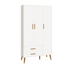 Guarda Roupa Infantil 3 Portas 2 Gavetas Isis Móveis Reller Branco. O Roupeiro Isis 3 Portas é uma excelente opção pra quem procura por qualidade, beleza e praticidade. Seus pés retro em madeira dão charme e elegância ao produto. Possui 4 gavetas espaçosas, 3 portas, cabideiro, prateleiras, corrediças telescópicas e puxadores em madeira. Marca: Móveis Reller